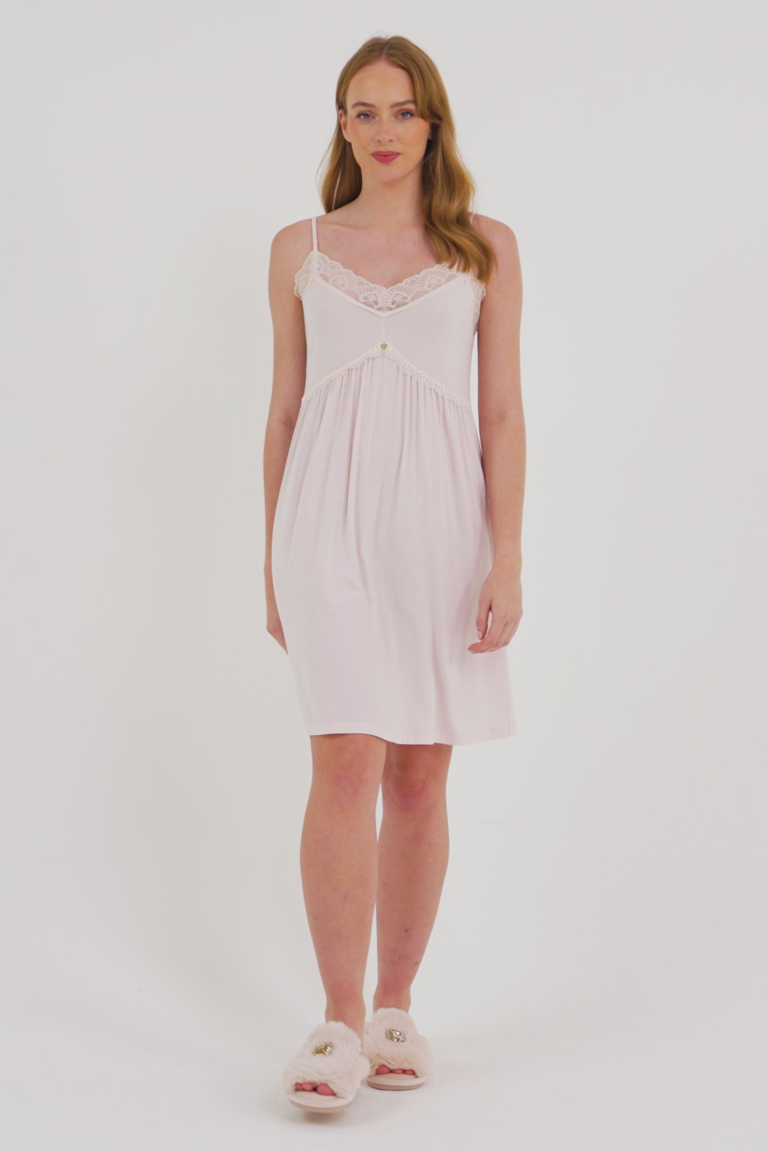 Bamboo Lace Chemise Nightdress in Powder Puff
