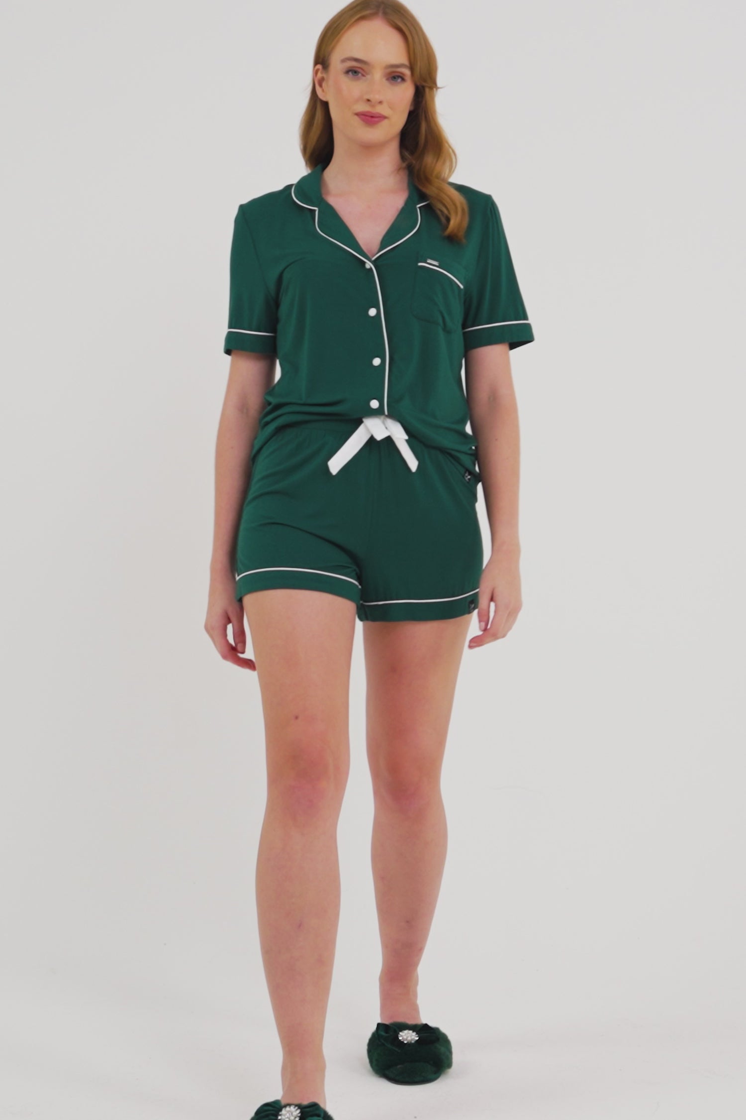 Bamboo Shirt Short Set in Green