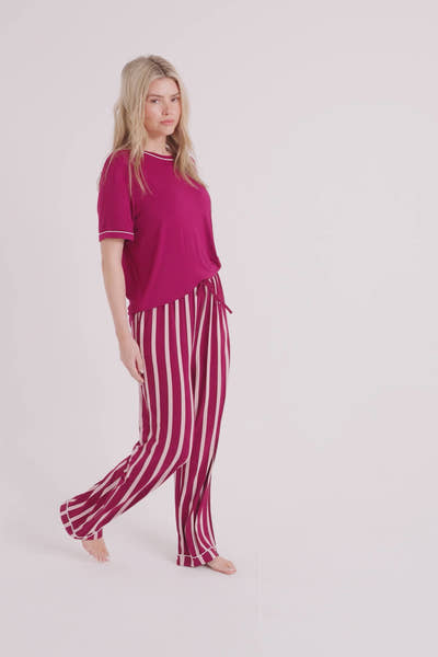 Bamboo Tee and Trouser Set in Bordeaux Stripe