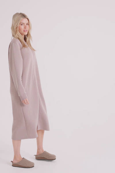 This Quilted Jersey Housecoat offers effortless comfort and easy wear with a two-way dyed-to-match zip front, making it a convenient alternative to traditional pull-on styles. Crafted from soft quilted jersey fabric, it features a relaxed fit and a shawl collar for a cosy, flattering silhouette. The calf-length design includes a split hem for freedom of movement, while cuffed sleeves and in-seam side pockets add practical details. Available in mink and charcoal, this women’s housecoat is perfect for lounging or layering during cooler days.