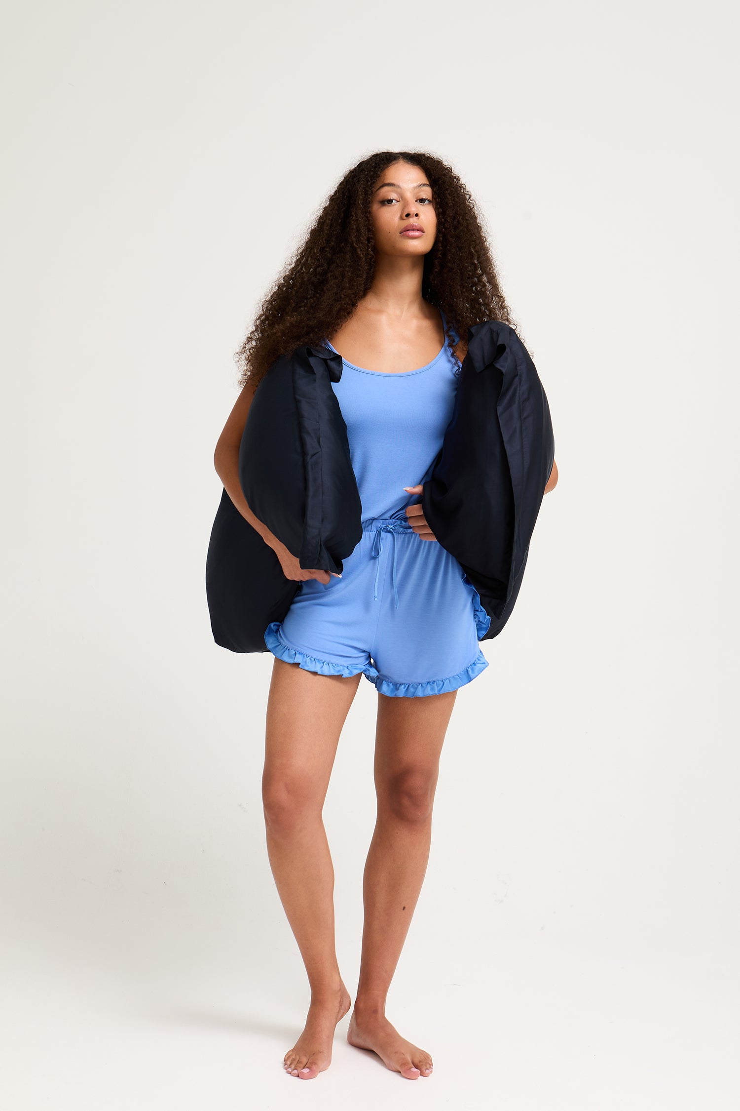 Bamboo Frill Cami Short Pyjama Set in Cornflower BlueBamboo Frill Cami Short Pyjama Set in Cornflower Blue