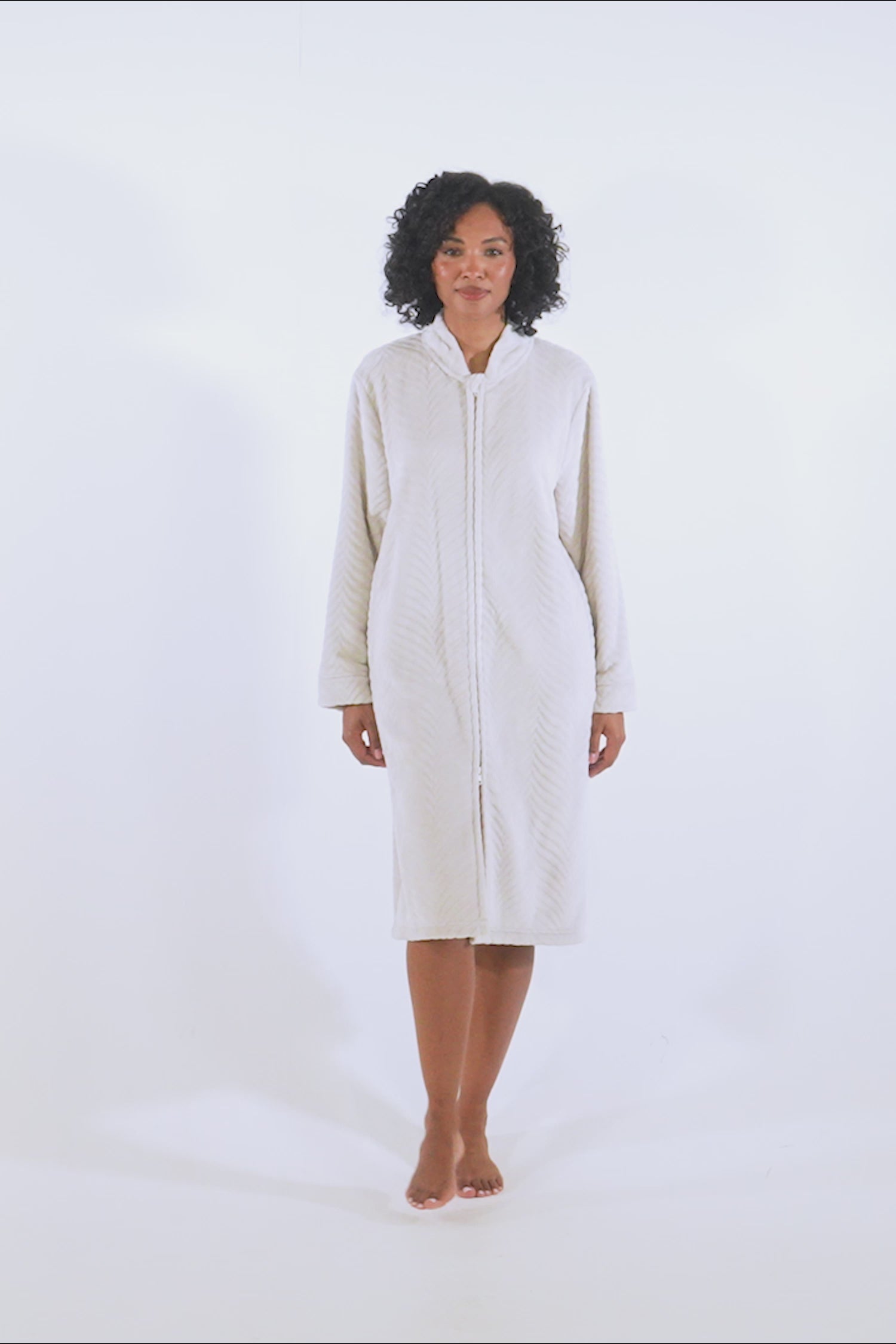 Cosy Chevron Housecoat in Almond