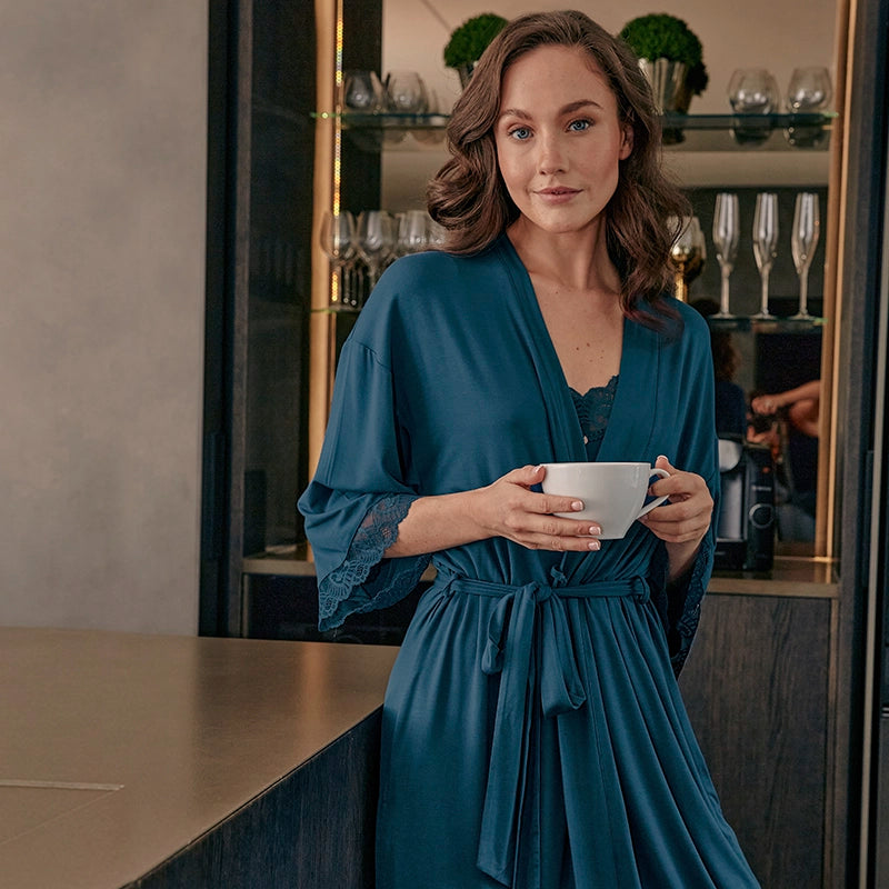 Crafted from Bamboo Viscose, our opulent lace trimmed silhouettes create sustainably conscious sophistication.