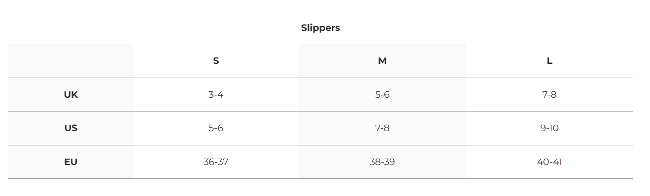 Here at Pretty You, we take comfort very seriously. We have carefully considered our sizings to ensure that our slippers and nightwear are the most comfortable fit for you. The Pretty You range is available in a range of sizes to accommodate the vast majority of our customers. If you need any more help with sizing information, please contact us.