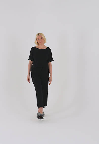 Bamboo Frill Tee Trouser Set in Black