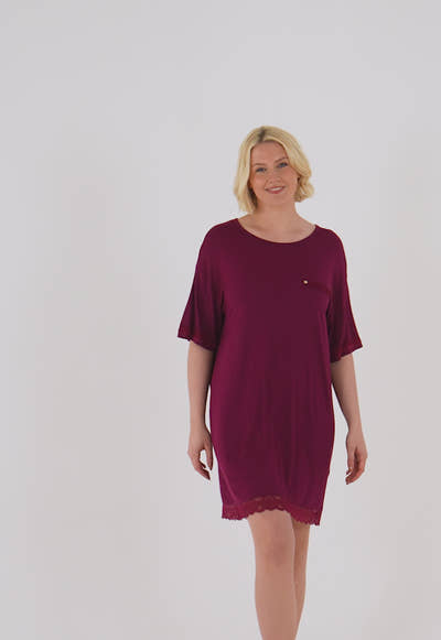 Crafted in a relaxed t-shirt dress style, it offers unrivalled comfort without compromising on style. Delicate lace trims grace the short sleeves and hem, adding a touch of femininity whilst maintaining the perfect length for all heights. Ideal for lounging and unwinding in ultimate comfort and sophistication. Embrace the tranquillity of the night with our Bamboo Lace Tee Dress, the epitome of elegant nightwear. Available in Raven, Powder Puff and Bordeaux.