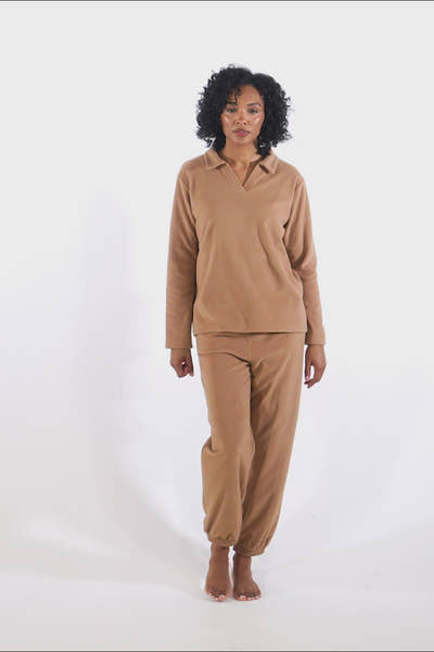 Introducing the ultimate in cosy luxury: our Fleece Lounge Set. This set redefines relaxation with a pull-on collared jumper crafted from the softest materials, ensuring you stay warm and snug. The jumper features full-length sleeves and a relaxed fit that flatters all figures, making it perfect for lounging in style. Paired with full-length jogger trousers, this set effortlessly combines comfort with elegance. Whether you're unwinding at home or enjoying a casual day out, the Fleece Lounge Set offers unparalleled comfort and a chic look. Elevate your loungewear collection with this sumptuous and stylish ensemble.
