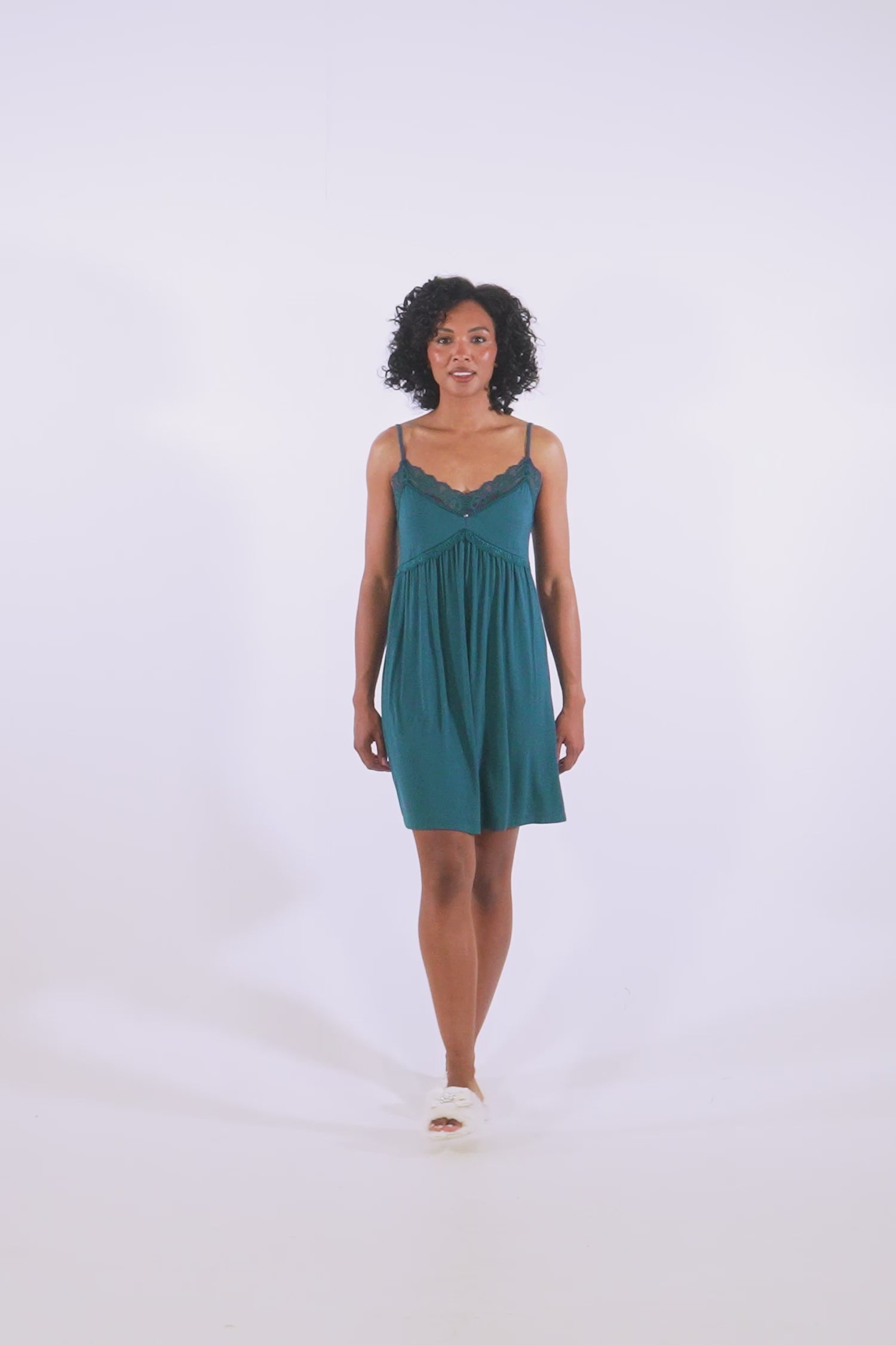 Bamboo Lace Chemise Nightdress in Teal