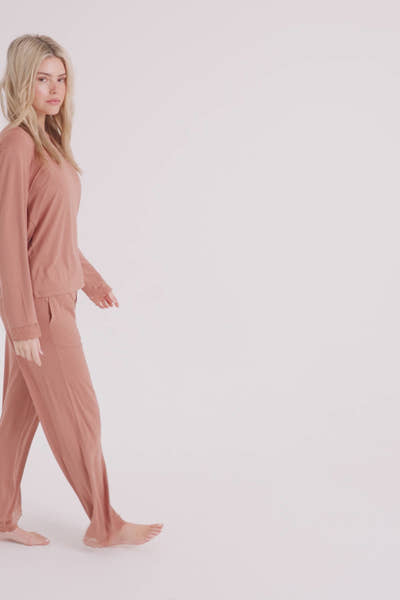 Bamboo Lace V-Neck Pyjama Set in Mocha