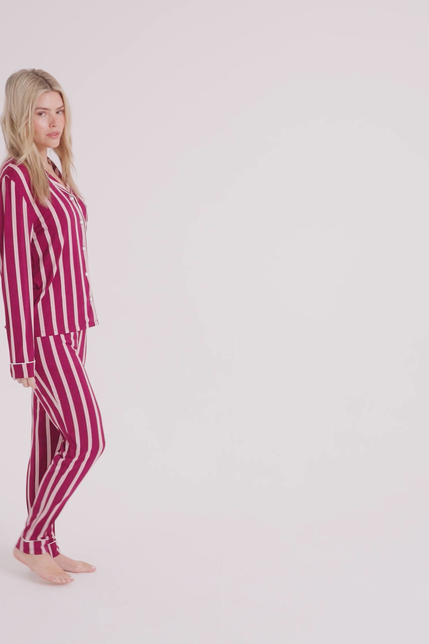 Bamboo Long Pyjama Set in Bordeaux Stripe