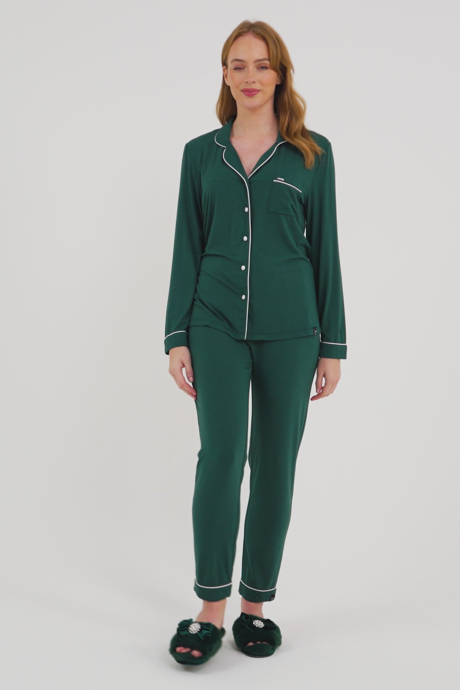 The essential pyjama set. Our Bamboo pyjama set has been a best-seller for years now and we can’t see that changing any time soon. Its timeless shape and details mean this set is guaranteed to please. A great gift idea for any luxury-loving lady in your life. Our pyjama sets are true to size with a standard fit.