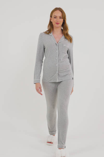 Bamboo Long Pyjama Set in Grey Marl