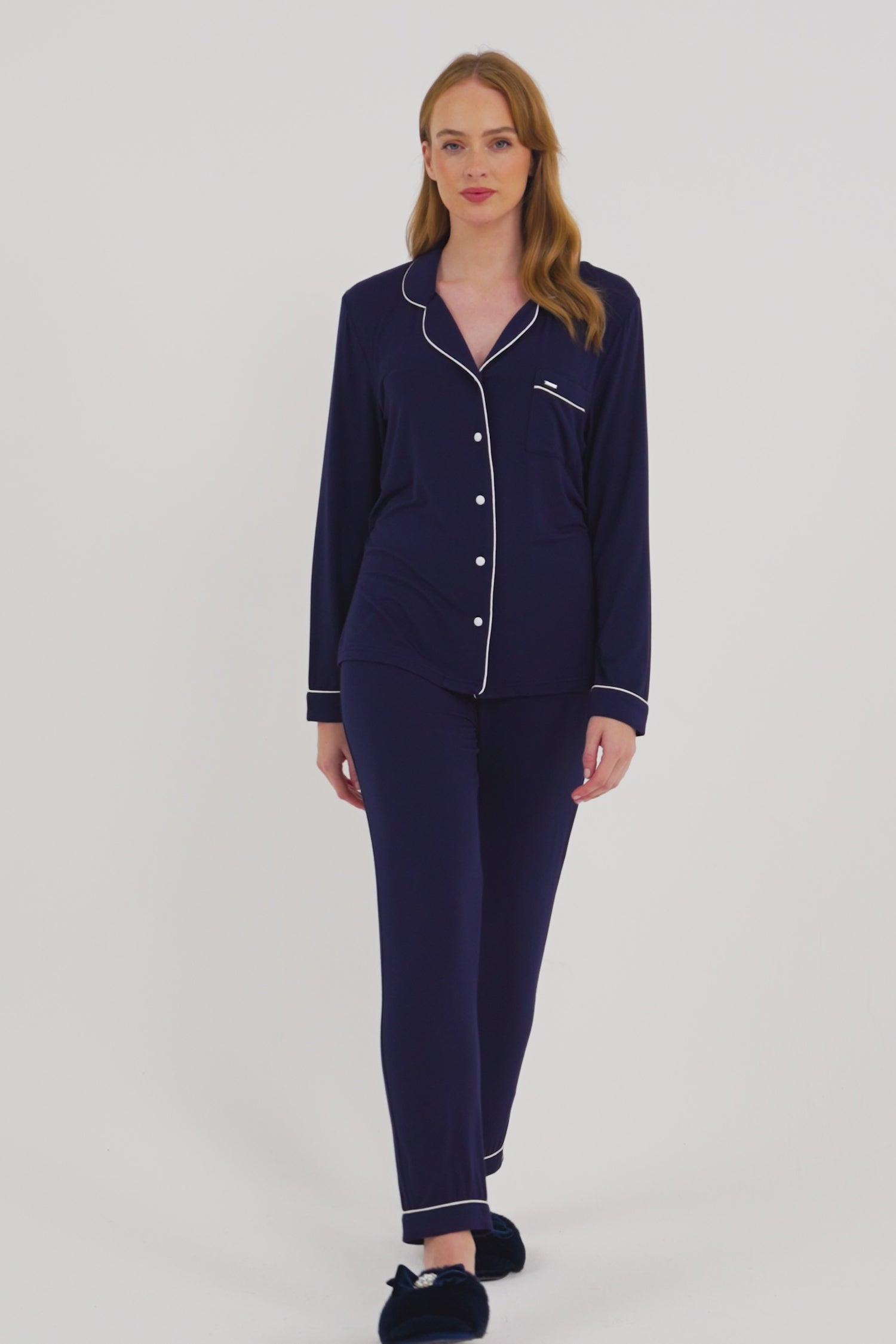 The essential pyjama set. Our Bamboo pyjama set has been a best-seller for years now and we can’t see that changing any time soon. It’s timeless shape and details mean this set is guaranteed to please. A great gift idea for any luxury-loving lady in your life. Our pyjama sets are true to size with a regular fit.