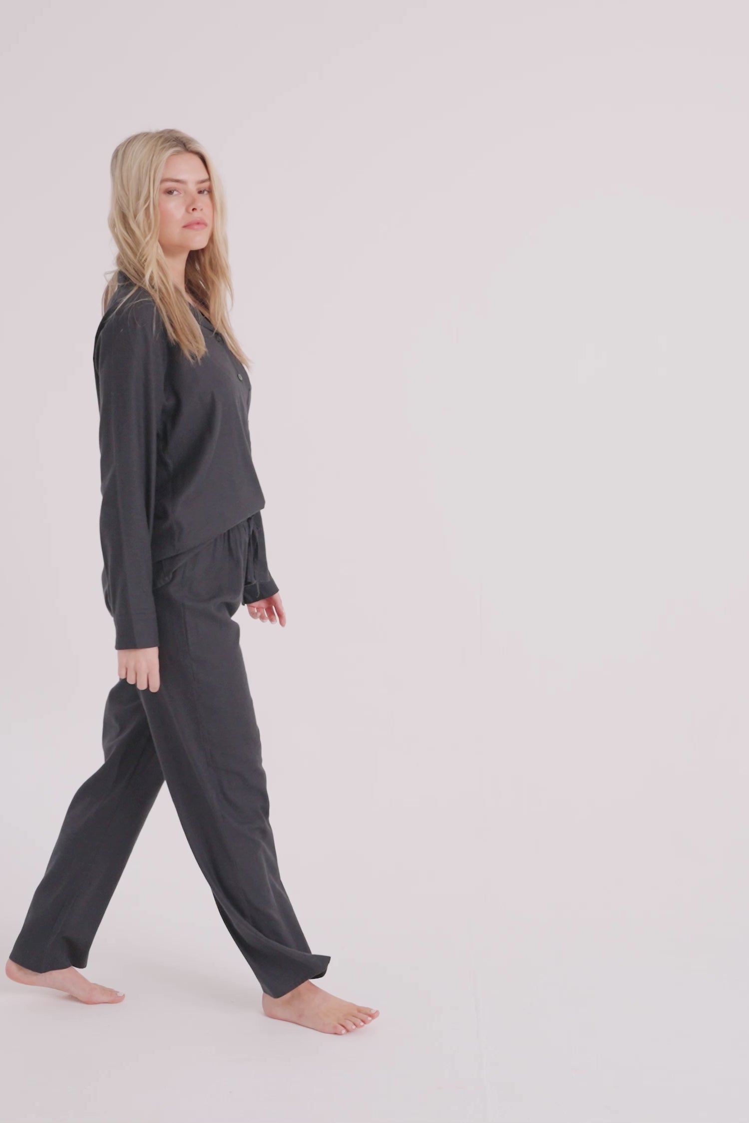Cotton Modal Long Pyjama Set in Raven