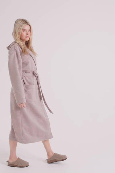 Quilted Jersey Hooded Robe in Mink