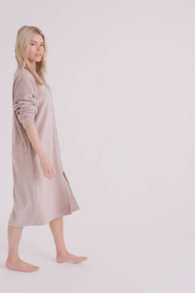 Designed for effortless comfort, the Velour Ribbed Housecoat features a two-way zip front that makes it easy to put on and take off, providing a convenient alternative to traditional pull-on styles. Made from premium-weight ribbed velour, it offers a soft, luxurious feel and relaxed fit that drapes beautifully. The calf-length design includes a split hem to allow freedom of movement, while cuffed sleeves and in-seam side pockets add practical touches. Finished with a shawl collar and a dyed-to-match zip, it’s a cosy layer that adapts to your needs with style.