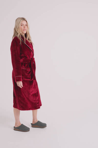 Stay wonderfully warm this winter with our Super Plush Robe, crafted from a premium heavyweight fabric that offers a luxuriously soft and cosy feel. Designed with a regular fit, this robe provides ample room for layering while ensuring you stay comfortable throughout the colder months. Its super plush texture makes it an ideal companion for chilly mornings and relaxing evenings at home. Available in pink, black and claret, it coordinates perfectly with our Bamboo Classic Collection, allowing you to create a seamless and stylish loungewear set. Discover the matching Mister You Super Plush Robe.